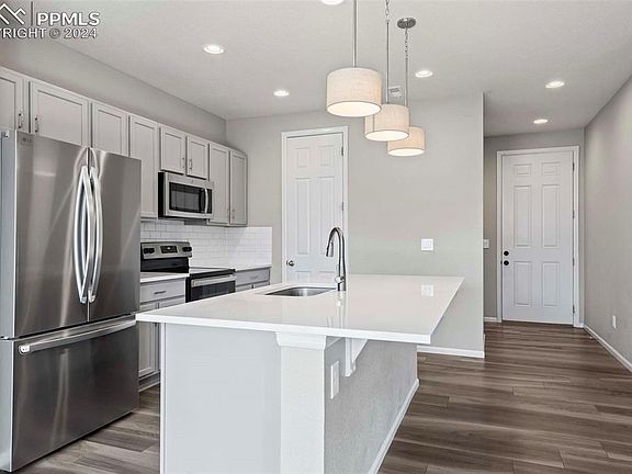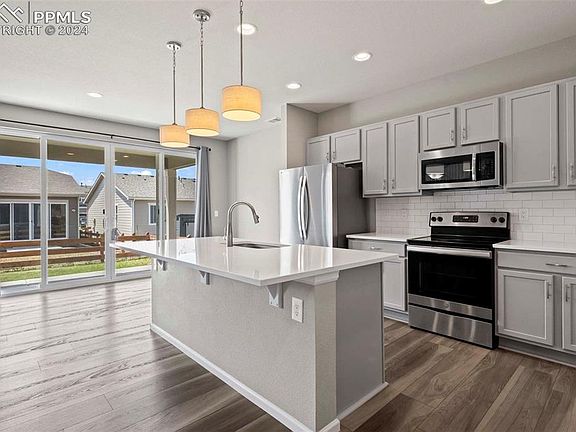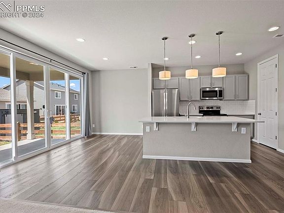 Perfect opportunity to gain instant equity with this beautiful two-story home in Colorado Springs! Near World Golf and Sand Creek Golf Course, The Citadel Mall, Dining, Fitness, and Grocery, all amenities are in proximity. This home welcomes you into the great room and kitchen with natural light streaming in through the large sliding glass doors. The eat-in kitchen features a large center island, custom pendant lighting, pantry, and SS appliances. The main floor also features a gas fireplace in the great room and a half bath. Head upstairs to find the primary suite, three secondary bedrooms, full bathroom, and laundry room. Bring the entertainment outside to the covered patio with a view of the fully fenced and grassed backyard. Near all major routes makes this the perfect location for commuting! Don’t miss this amazing opportunity to gain instant equity with this beautiful two-story home in Colorado Springs!