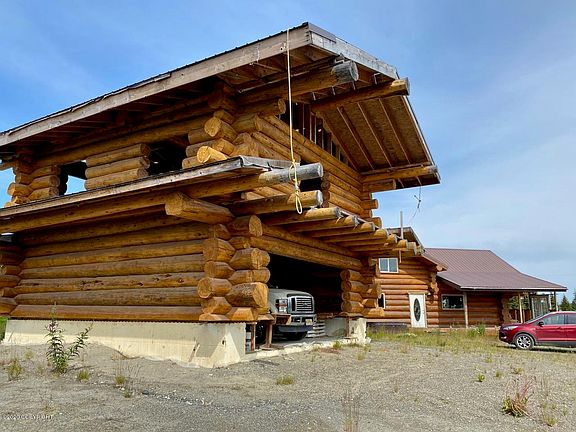 Built with huge scribed logs, this charming, rustic home just needs the wood plank flooring installed, and it's there waiting for you. Burl supports, etched windows, and natural wood railings give it plenty of character. The huge shop and barn with stalls give you work and storage space and room for all those animals you'll want. Plenty of room over the garage for an apartment or studio,