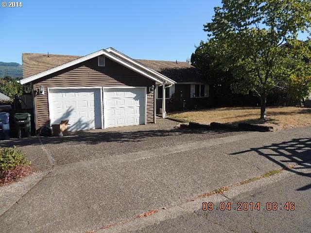 Thurston home with a view of the hills. Sunken living room, sliders to the large deck from the dining room and master bedroom, patio area on the side of the home. Garage with laundry area.