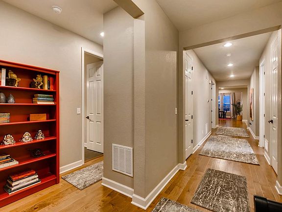 Absolutely Stunning Ranch with Amazing Finished Basement in Highly Sought After Serenity Ridge with Reservoir Views! The wow in this home is the truly gourmet kitchen with expansive Quartz island, upgraded cabinetry, double ovens and gas range, custom backsplash, dramatic wide-plank hardwood floors, and the highly coveted "sunroom" that floods this space with natural light and is the perfect place to gather over any occasion. The master suite is quite luxurious, with vaulted ceiling and luxury en-suite bath. There are 2 additional bedrooms and an elegant formal study as well. This is the basement of your dreams! Currently utilized as a full mother-in-law suite with full custom appointed kitchen, this space could also make a fantastic home theater, billiards room, playroom, rec room... Don't miss the outdoor entertaining spaces... A deck with gas line, covered patio, generous yard, and paver walkway and garden space. The efficiency of this solar home is off the charts. Come visit today!