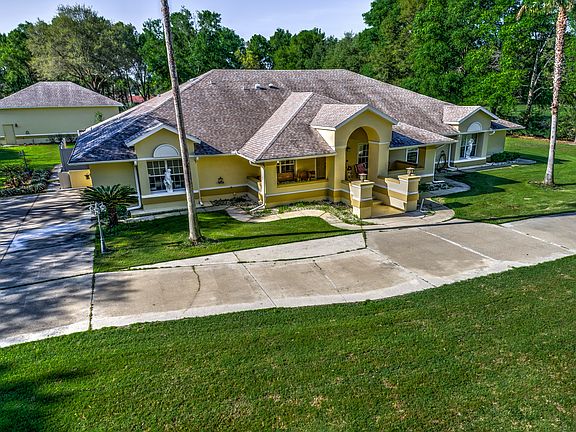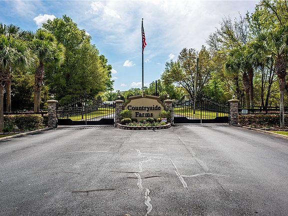 3-Acre Horse Farm Estate nestled in the renowned equine gated community of Countryside Farms. Located west of I-75, with easy access to shopping and dining. A colossal circular driveway, arched doorways, and unique architectural design welcomes guests w/covered front porch and custom french doors into this magnificent home. Enjoy luscious amenities; a solar heated, salt pool with 2 wet bars and outdoor shower, solar sky lights, intercom in every room, exterior lighting, etc. The great room features rich bamboo floors and a dazzling marble fireplace. The gourmet kitchen combines top of the line stainless steel appliances, granite countertops and cork flooring. The master suite features dual walk-in closets, dressing room, and a spa-like luxury bath with dual vanities and handicap accessible walk-in shower. The 30x40 detached garage is large enough to hold two 38 foot RVs. Both buildings have new architectural roof shingles and painted with a lifetime warranty coating.