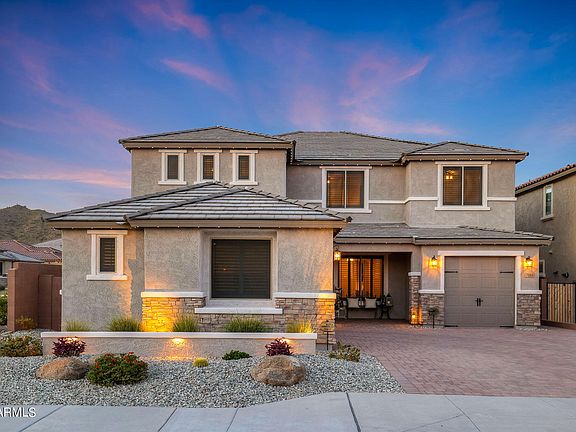 **PRICE IMPROVEMENT! ** Welcome home to beautiful Aloravita situated between two mountain preserves! Over $175,000 in builder options & owner upgrades were put into this stunning 5 Bed 4.5 Bath + Office/Den & BONUS Room boasts a generous 3,915 s/f on a corner lot. BEDROOM & FULL BATH DOWNSTAIRS! Built in 2021 with a 3 Car Garage. Gourmet kitchen w/ large island, quartz counters, butler pantry + additional large pantry. Family room w/ gas fireplace & formal dining room. Custom banisters to spacious upstairs w/ huge BONUS ROOM. Wood-look tile & upgraded carpet/pad throughout. Quartz countertops in all bathrooms! Lg Master w/ beautiful mountain views open to spacious bath. Bedroom upstairs with private bath! Professionally installed LED lighting and MUCH MORE!