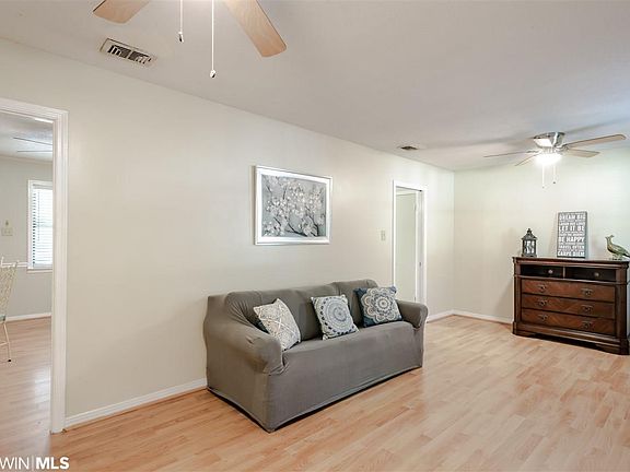 Welcome to 7088 Westfield Rd, Theodore. This 4 bed 2 bath brick home offers fresh paint, new laminate in the master suite, 2nd guest room, and living areas. New roof (per seller). New carpet has been installed in the 2 larger guest rooms. With a light and fresh color scheme, this home is move in ready and offers ample kitchen storage complete with a breakfast bar and dining area. The home is a true 4 bedroom and the smaller room would be ideal for a nursery or study. There is a spacious laundry room which allows for extra storage. The back yard of this home is a magical place, and very private. The back deck looks out over the oak canopied yard full of flowering plants, shrubs and complete with an operational koi pond water feature. 2 storage sheds to remain. Seller will contribute to buyer closing costs with acceptable offer. **Seller reserves the dark purple hydrangea and the bench by the koi pond**
