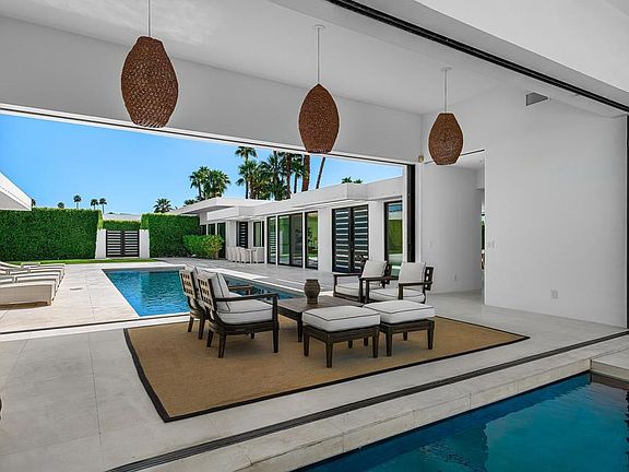 ARCHITECTURAL WORK OF ART... TOTAL PRIVACY... COVETED NEIGHBORHOOD... ***NEW PRICE***this tour-de-force residence by renowned designer Martin Kobus checks all the boxes. Offering complete seclusion on a discreet cul-de-sac in the sought-after Tamarisk Country Club neighborhood, the one-of-a-kind floorplan is nothing short of dazzling. Imagine a dramatic floating loggia that hovers above dual saltwater pools as the home's centerpiece. Mahogany, stone and glass set the tone for the ultimate relaxation and entertaining. Four bedrooms and five baths bring about the full desert resort experience. Manicured grounds, mature landscaping and an attached casita are the icing on the cake of this secluded sanctuary. Photos do not do this home justice, you must see it for yourself to experience the drama, the splendor and the knockout factor of this incomparable jewel.