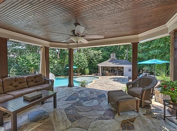 Vacation in your own back yard! If you like to entertain, this is it! One of a kind custom 4 BR, 3.5 BTH 2 story home on corner 1/2 acre lot on a cul de sac in the Anchorage Section of Tega Cay. Not a detail has been missed in this heavily updated home with resort like amenities. The pool and outdoor living areas are amazing and truly define this spectacular model perfect home. Beautiful hardwood floors throughout the main level, beautiful updated kitchen with granite counters, tile backsplash and stainless appliances. Open floor plan is perfect for every day living and entertaining with exceptional flow from kitchen to breakfast room to family room to covered porch and outdoor areas. Outdoor living area features a fireplace, mini refrigerator, wood storage area, television and a bathroom perfect for a quick change after being in the pool. Decorator colors throughout the home and it truly shows like a model. Low SC Taxes, great Fort Mill schools & popular Anchorage subdivision.
