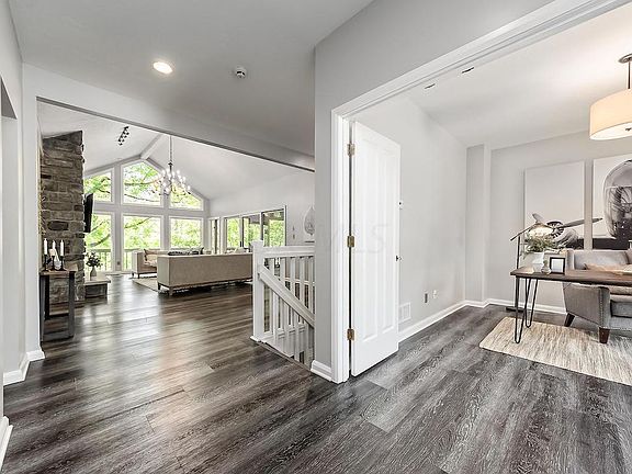 Straight out of Architecture Magazine! 4 bedroom, 3.5 bath contemporary home w/ 4173 sq/ft!! Set on a gorgeous .40 acre wooded lot, you will love the amazing views of nature from literally every room. The outdoors can be enjoyed on wrap around deck, screened in porch and patio accessed from walk out basement. Serene, OPEN floor plan flooded with natural light. PERFECT for someone who wants ONE FLOOR living, but wants the extra space in the lower level to entertain or house additional family members. Dramatic Great Room w/ 2 way firplc plus Gorgeous chef's kitchen. Completely renovated and move in ready! NEW concrete driveway 2017, 2 new HVAC systems 2014, Roof 2010 too many updates to list! Will go quickly.