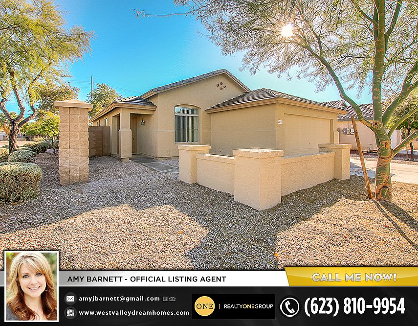 Beautiful 3 bedroom 2 bath home in Buckeye offering an open great room with Den perfect for office or playroom. Tile and carpet throughout. Eat in Kitchen with all white appliances included! Large master suite with walk in closet, master bathroom with tub/ shower. Laundry room with washer & dryer connections. 2 additional guest bedroom w/ blinds and side by side closets. Low Maintenance Desert rock landscaping in the backyard with a covered patio. Pet friendly with additional deposit. 2 car garage. READY TO MOVE INTO, DON'T MISS OUT (zbl-12807175152)
