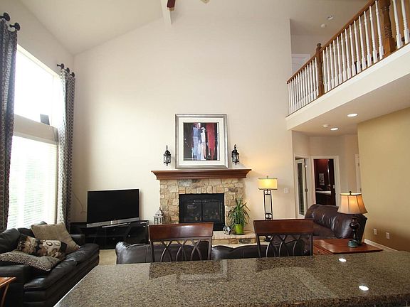 Gorgeous Home! Impressive 2-story family room with stone fireplace and views of upper level bridge. Large cherry cabinet kitchen with granite slab, gas stove, desk, island, breakfast nook, more. Dining room with bay window and butler's pantry. Main level study with dual-sided fireplace and 3/4 bathroom. Vaulted master bedroom with fireplace and views of open space. 4-bedrooms and 3-full bathrooms on upper level. Deck overlooking opens space. Mud room with utility sink. Huge, open, walkout basement. 676 square foot 3-car garage. A/C. Central vacuum system. Great curb appeal. This home has it all!