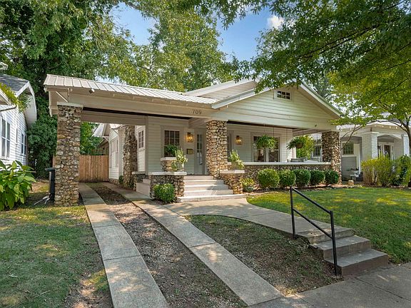 What a gem! This beautiful true craftsman-style home sits on a picturesque tree-lined street with sidewalks in historic Glen Iris, so charming it was featured in a Hallmark movie. Off-street parking under the classic Craftsman porte cochere is perfect for unloading groceries. The inviting covered front porch, framed by stunning stacked river stone sets the stage for what’s inside. Bed swing stays ya’ll. Original 6 over 1 windows fill the house with light. Hardwood floors throughout. So much original charm and so many updates. Updated kitchen with original butler’s pantry, newer appliances, shaker style wood cabinets. Bathroom remodeled with new tile, toilet, sink. Tub refinished. Cast iron tub original to the house (2024). Metal roof (2022), HVAC (2023), Exterior paint (2022), New light fixtures (2024), New stainless steel French door refrigerator (2022), Stainless steel dishwasher (2020). Large, flat, fenced backyard with storage shed. Walk to UAB. This is City living at it’s best.