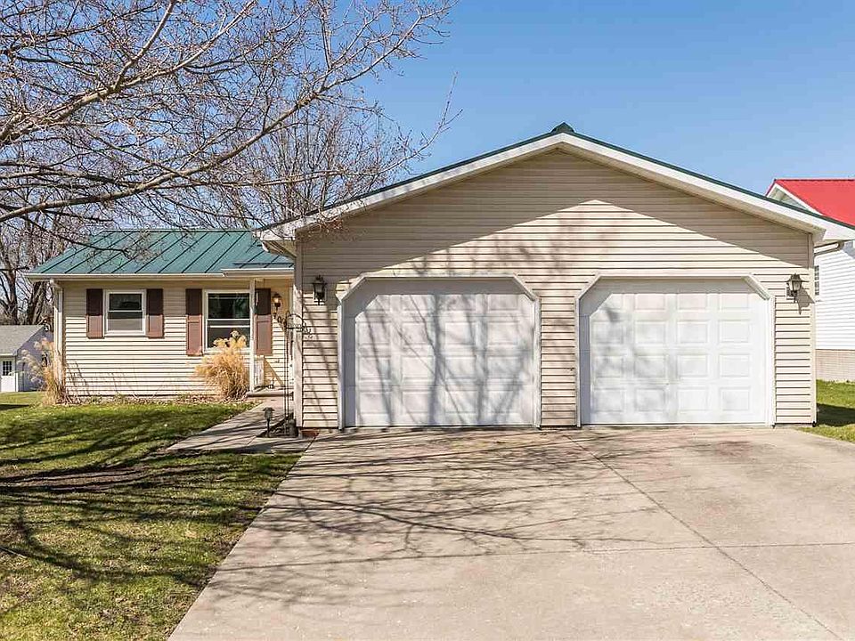 Adorable home located in the poplar Kalona community. So much potential in this well-maintained home offering 3 bedrooms, 2.5 baths, large 2 car garage, lower level family room, 4th non-conforming bedroom and beautiful private backyard. Newer metal roof and main level flooring.