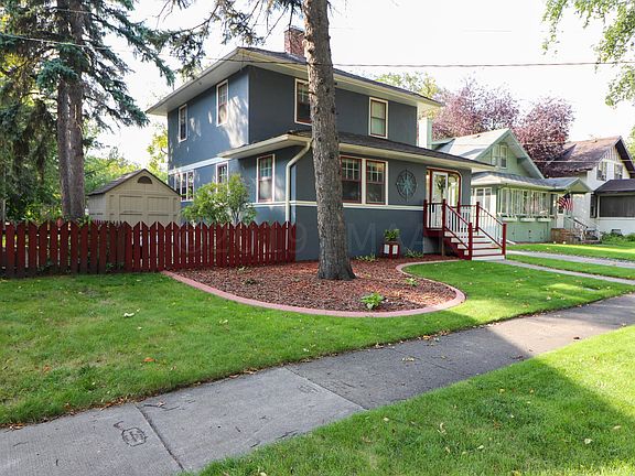 Updated historical home in the heart of Fargo. The living room has a wood fire place and a separate area for either an office or playroom. The kitchen has been updated with modern cabinets. The main level has a 1/2 bath. The upstairs has 3 good sized bedrooms and a bath. The home has beautiful landscaped yard along with a 2 stall garage. Basement has a living space and the laundry area complete with a toilet, sink and shower.
