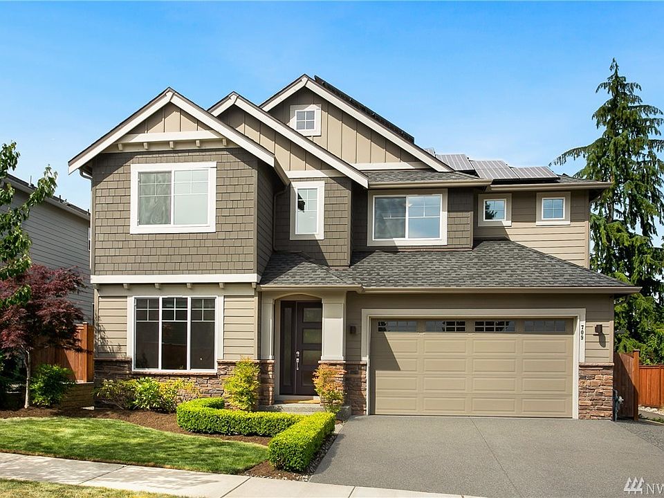 Welcome home to this 4bedroom+den Craftsman home near Martha Lake! This was the Model home w/$40K in upgrades. Many Smart-home features: EV charger, Nest, Ring. Solar panels will save you $! Open kitchen-dining area leads out to fully-fenced backyard, covered patio & firepit. Chef's kitchen features gas range and S/S appls. Master suite and Theater room w/ sound system. Spacious 2-car garage. A/C and tankless water heater. Close to Mill Creek Towncenter, parks, I-5 & I-405. VIEWS of Martha Lake!