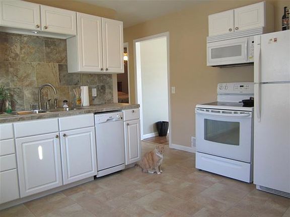 This 2 bedroom charmer boasts a newly remodeled kitchen featuring tile countertops, a matching backsplash, a modern faucet, and white appliances. The master is nicely sized with neutral paint and plush carpet. Beautifully refinished hardwood floors and a fresh coat of paint modernize the second bedroom. The bathroom offers a newer vanity, commode, and a large glass block window for additional light. A spacious family room is located in the basement with newer carpet and quick access to the laund