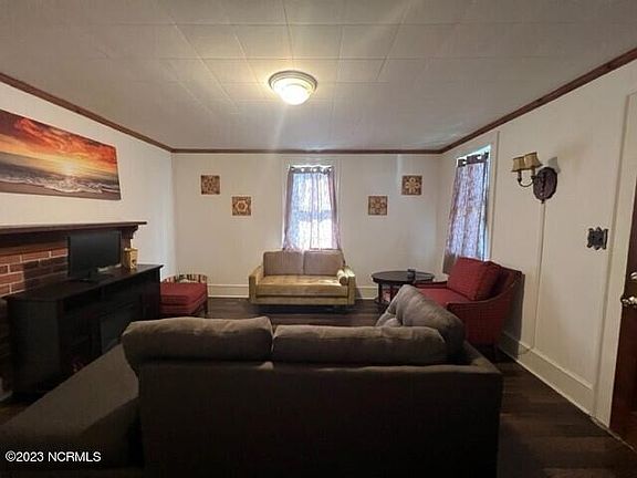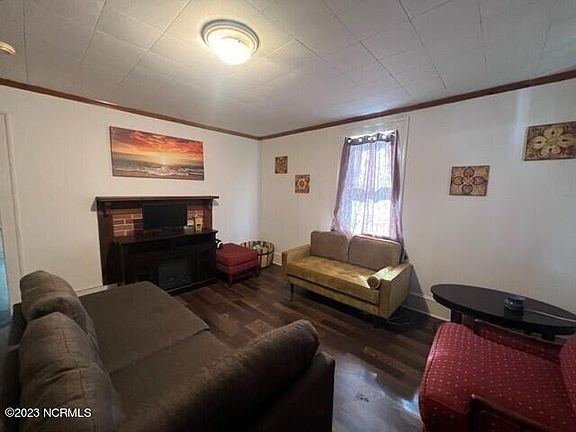 Here is your opportunity to own a home with payments less than most rentals. Located in the heart of Ahoskie, this home is conveniently located within walking distance to downtown, schools and medical facilities. The home features a spacious living room, an adjacent dining room and an eat in kitchen with refrigerator and range. There are two nice sized bedrooms. The front bedroom has an attached bathroom and the rear bedroom has two closets and a nearby full bath. There is also an office with built in cabinetry and an enclosed back porch. Out back there is a patio area, a storage building, and a double detached carport.