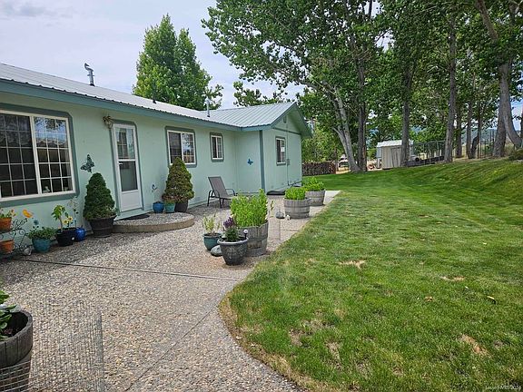 PANORAMIC VIEWS FROM THIS HEAVENLY FOUR-ACRE MINI RANCH! This beautiful home, owned by one family, has been the perfect place for raising children and many beloved pets. Inside, you'll find an open floor plan featuring a massive living room with vaulted ceilings, dining area, and kitchen. The kitchen boasts an abundance of cabinets with new stainless steel appliances. The laundry room doubles as a pantry with a built-in desk and even more cabinets for extra storage. Additional insulation in the interior walls lets you enjoy a quiet and peaceful living environment. The home is equipped with forced air propane heat and a Blaze King wood stove, perfect for those cold winter nights. Outside, you'll discover a large three-stall pole barn (24' x 36'), as well as separate pens for pigs, goats, and dogs, complete with plenty of fencing and cross-fencing, plus open fields. Mature trees line the backyard patio area, creating an ideal space for family barbecues. All this comes with underground utilities, ensuring unobstructed views of the surrounding mountains. To top it all off, Baxter Creek runs across the back of the property, adding to the charm and beauty of this mini ranch.