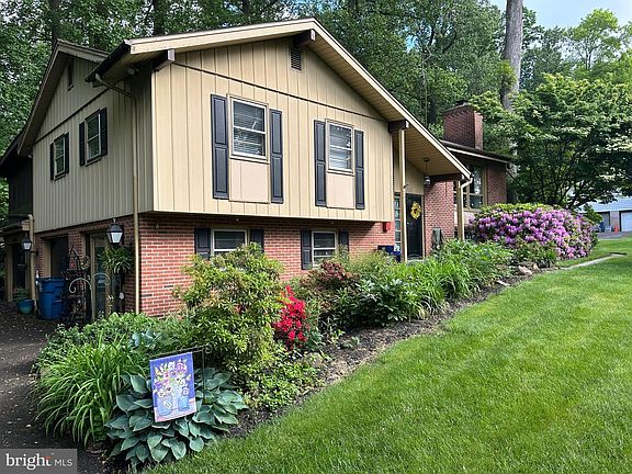 Feel like you live in the middle of a secluded woodland park but just a few minutes to town, shopping at Masonic Villages Market, the train station and more! This oversized bilevel home offers a sunroom, screened porch, hardwood floors, vaulted ceiling LR/DR and a brick wall/fireplace for cozy winter nights. Newer cherry custom kitchen with a peninsula and skylines will make your heart sing while preparing meals. The primary bedroom has an on suite bathroom and features glass blocks. The lower level has a familyroom, den, office, storage, full bath and laundry room. All the appliances remain as well. But outside…..oh my! Your own railroad encircles the pond. Regulation pitching distance mound and backstop, shed with electric, multiple patios and that’s if you ever want to leave the large screened porch…. This one is worth a look!