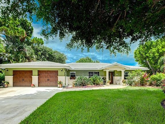 Over $100K in upgrades. Stunning 3/2/2 less than two blocks from the beach and a short walk to Venice's Main Street. Abuts a Pocket Park, a city-maintained green space for enhanced privacy and play space for family and pets. Wrought iron fenced back yard, with 3 gates and an RV or boat pad. Mature landscaping includes fruit-producing trees, lighting and well irrigation. Multipurpose 12x20 storage shed in back with electricity. Heated pool with hot tub, fountains and lighting. Outdoor kitchen features built-in grill with granite countertops and refrigerator. Covered outdoor living area with TV hook-up. Great for entertaining. Landscape and motion-activated lighting. New engineered hardwood flooring and handmade Mexican tile. The split plan features a large master with dual walk-in closets and French doors leading to outside patio. All new master bath with double vessel sinks, solid mahogany vanities, walk-in shower. New baseboards, crown molding, and solid wood doors throughout. All new lights and fans inside and out. Custom wood countertop, granite, tile backsplash and faucets in kitchen and bathrooms. All new stainless steel appliances including double-oven, washer, dryer and water heater. Hurricane shutters. New hurricane-rated garage doors. Everything is done. This home is gorgeous and move-in ready!