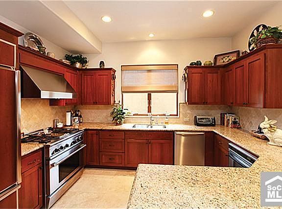 Stunning Mediterranean situated South of Coast Hwy on Begonia Avenue in the heart of Corona del Mar. The main level has a gourmet kitchen with stainless appliances, open living and dining areas with limestone flooring, fireplace and French doors to the front garden with water feature. A guest bedroom, full bathroom and laundry room complete the main level. Rich hardwood floors lead you to a second floor bedroom with en suite and the master retreat, fireplace and spa like bath with a jetted soaking tub. The interior hardwood staircase continues to the upper level used as an office with custom built-in cabinetry. Just off the office is an expansive rooftop deck that enjoys views of the ocean and Fashion Island.