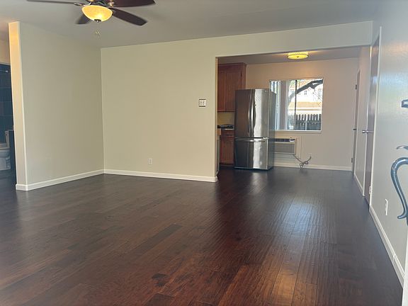 Beautifully redone garden apartment in Historic Folsom with hand scraped hardwood flooring and Jacuzzi tub. You will truly enjoy all the great attractions nearby such as Sutter Street which offers a weekend farmers market, free outdoor concerts, parades and many social events. Everything is within a short walk including the Light Rail, Walmart, hiking & biking trails, Lake Natoma and plenty of shops and restaurants. Even Folsom Lake is within biking distance. The building also backs up to a cul-de-sac which adds privacy and extra parking. All appliances are electric including air conditioner, baseboard heaters, stove, refrigerator and built-in microwave which are cost efficient, tons of closet space, linen closet, and walk in pantry. On site laundry is shared but free to use. Offstreet Parking and a large grassy area with picnic bench for your enjoyment. WiFi is also included as well as water sewer and garbage.