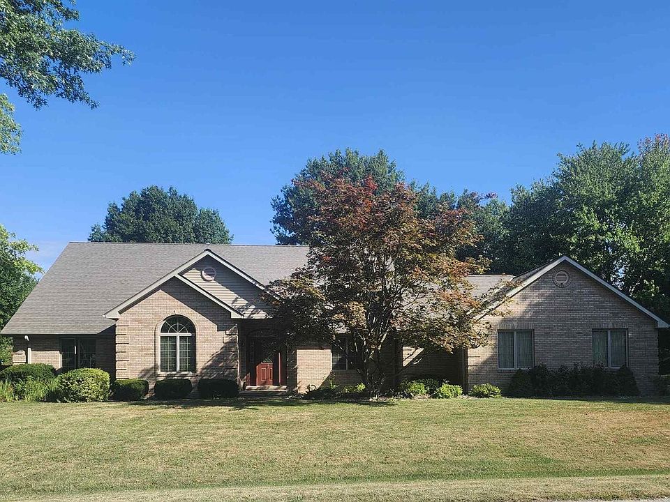 Move right into the large ranch home located in golf course community. This 2,767 sq ft home features 3 bedrooms and 2 1/2 baths on the main level with an additional bedroom with egress and full bathroom downstairs. The downstairs office could possibly be use as a 5th bedroom. The 14' cathedral ceilings highlight this open floor plan which opens into a large sunroom. Two sets of french doors separate the sunroom from the spacious kitchen and family room. The beautiful spa-like master suite is very roomy. All 3 main floor bedrooms have a walk-in closet. Main floor laundry room as well.