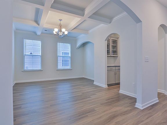 Welcome home to this beautiful open floor plan in a 'barely lived in' home. The Yates model floor plan has many beautiful features, like arched doorways and hard surface floors throughout the downstairs living areas. The dining room has coffered ceilings and a butlers pantry. The kitchen has plenty of room to entertain with its open concept bar seating area, granite counter tops, stainless steel appliances, walk in pantry, and gas stove. The kitchen overlooks the eat in dining area, living room, gas fireplace, and the arched entry into the sun room. There is a bedroom and full bath downstairs that could be used as an in-law suite. Make your way upstairs to the over sized master bedroom, with sitting area. The Master en suite has his and her vanity areas, separate tub & shower, and water closet. The staged 'dressing area' with three mirrors connects the his and hers walk in closets. The rest of the upstairs contains three bedrooms that feature walk-in closets and a large bonus room. The washer dryer room is a room in itself with a folding area for your laundry. The home has only been lived in since February of 2020 so skip that new home process and come straight to that move in ready home.