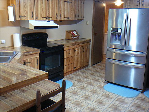 Doublewide has 4 bedrooms, 3 full baths. stove, newer refrigerator and Heat and Air system along with 2 storage buildings and a metal roof.