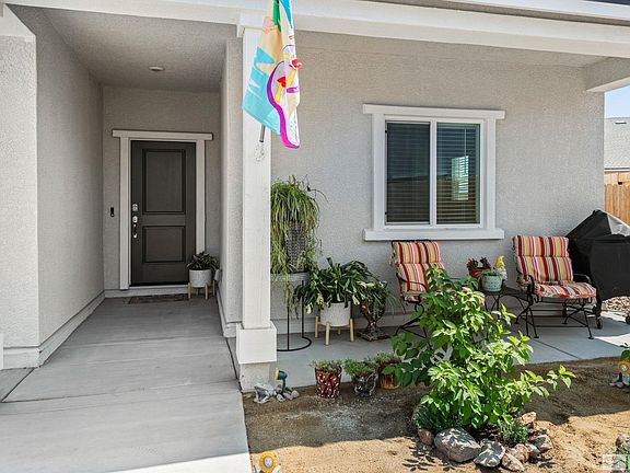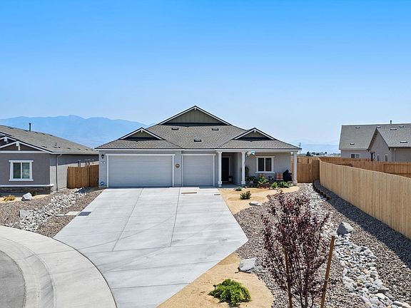 Your dream brand new luxurious home awaits you in Dayton! Welcome to your single-level, multi-gen home featuring both a spacious Primary & Jr. Primary suite, resting on 0.30 acre, cul-de-sac lot with incredible mountain views for enjoying Sierra Nevada sunsets and starry nights. This open-concept floorplan is perfect for indoor/outdoor entertainment, with privacy for yourself and your guests. The large side yard is ideal for the gardening enthusiast or whatever your heart desires. Home is only 4 months new!, Equity, Equity, Equity for your new home! New shopping center, entertainment venues, a park and recreational facilities, and traffic lights are planned for this neighborhood! But don't you worry, your home is perfectly located on a private premium lot with no traffic to be concerned about! Step inside to discover a stunning open home adorned with laminate flooring throughout the main areas, and comfy carpet in the bedrooms. The heart of the home is your stunning open kitchen, which has quartz countertops with a large island featuring a new upgraded sink with touchless faucet. Enjoy cooking gourmet meals for your guests on your upgraded new 5 burner, GE Profile gas stove. All cabinetry throughout have been adorned with all new hardware post build. The primary bedroom is a true retreat, complete with 2 walk-in closets and a luxurious en-suite with a walk-in shower and garden bathtub. The Jr. Primary suite has a private bathroom with a walk-in shower. Brand new washer and dryer and 1 yr old refrigerator are included! Owners had a water softner system installed post build and RO connected to the refrigerator! The entire home is complete with upgraded package including Safe Haven smart home, video doorbell, garage door controls, lighting, door lock, thermostat and voice. New smart switches were installed throughout the home and ADT security system. The home also features a tankless on-demand hot water heater. The backyard is a blank canvas to create your own backyard oasis, with no back fence neighbors! Newly planted maple tree and 2 cherry trees will be yours to enjoy. Outdoor fun? You got it. Bring your toys for riding on the nearby trails. Golfer? PGA Dayton Valley Golf Course is a short drive!