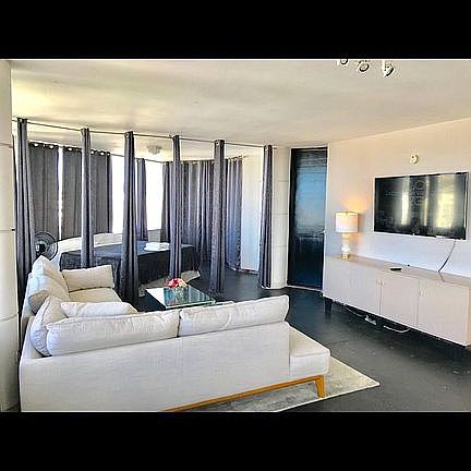 This 1820 sf Penthouse Renovation has spectacular views of Atlantic Ocean and San Juan Bay. Building has just been repainted. Available furnished with multiple options or non furnished. The PH has 2 floors all rooms have ocean views. The upper level is one large room which divides into 2 BR's with a large LR/DR in the middle once the privacy curtains are drawn. The lower: Kitchen, 1 separate bedroom, 2nd bathroom. The area is in the middle of Miramar - Old San Juan, Condado, Isla Verde. Everything is close and a lot of walking distance action. It's really in the middle of the 4 mile tourist zone! Available for executive 30 day lease or longer.