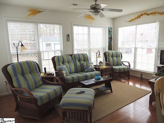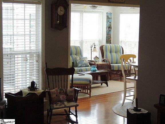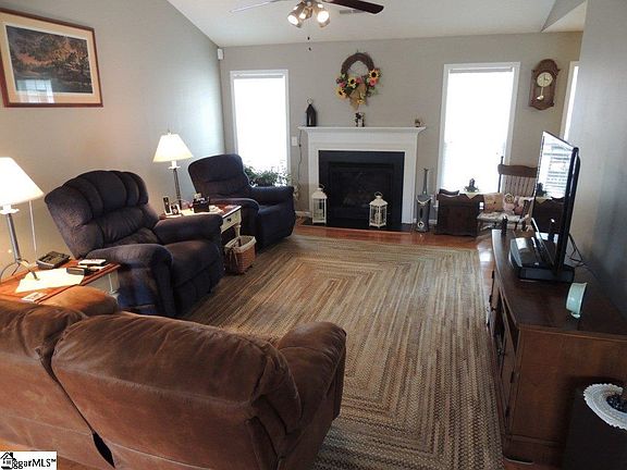 This beauty features 3 BR and a Bonus Room/4th BR and 2 full baths and over 1900sf per previous appraisal. You'll love the beautiful wood floors throughout most of the main floor and staircase. And you'll enjoy entertaining in this open floor plan that includes a spacious dining room with column, Great Room with fireplace (gas logs) and cathedral ceiling, sun room overlooking private back yard, and delightful kitchen and breakfast area. The split bedroom plan features the master bedroom on the garage side of the house along with the bonus room and the other two bedrooms on the Great Room side. The large Master bedroom has a walk-in closet. The master bath features double sinks and a garden tub as well as a spacious shower. Don't miss the large patio on the back and the NICE storage building with electicity in the back yard! And note that there is a third car parking pad on the front. You'll also love the convenient location that is walking distance to Golden Corral and other venues on Old Easley Bridge Hwy. So many recent upgrades: storm door, all faucets, hall bath sink, A/C and Gas Furnace, flooring in baths, shower door in Master, stainless steel appliances, Rev-a-shelves in some cabinets.Hurry and make your appointment today!