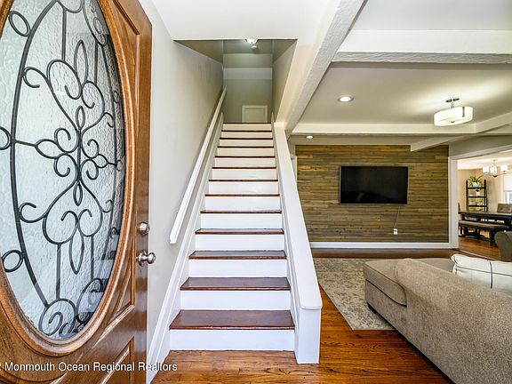 Pack your bags and move right in! This updated Cape Cod home has trendy features and plenty of space to settle and grow. Step inside to find beautiful hardwood floors all through. The Living Room has beamed ceilings and a Bay Window that brightens up the room. Formal Dining Room is so spacious and leads right into a newer Kitchen. SS appliances, tile backsplash and good storage, too! There is a bonus room that is ideal as a play room or home office-such a versatile space. 2 Bedrooms on the 1st floor and 2 on the second, all a great size with large closets. Entire home is adorned with crisp neutral tones so it's so easy to move right in and customize. Newly renovated full bath is so sleek. Full W.O basement is just waiting for finishing touches. Large rear deck looks over a manicured backyard that is all fenced in for your privacy. Gravel stone patio is a cozy area for your outdoor furniture. All of this with plenty of beaches nearby, local conveniences and major roads. Don't miss out on this one!