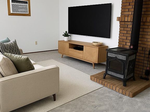 Inside, you’ll find a bright and inviting living space with double-pane windows and a cozy wood-burning stove. The open kitchen includes all major appliances, and both bedrooms are conveniently located on the main level. The full unfinished basement doubles your space potential, ready for storage, future expansion, or a home gym.