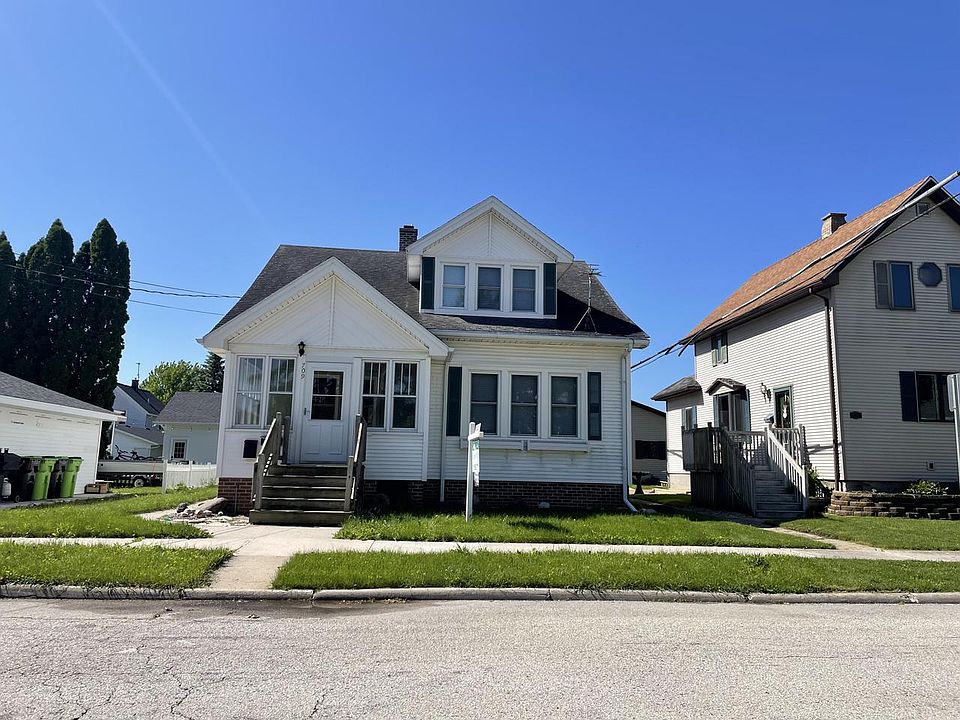 Step into the warmth of this inviting 3 BR, 2 BA home that's ready to embrace you with its charm. Discover a spacious kitchen w/ quartz countertops + cozy snack bar, perfectly complemented by an attached dining rm, ideal for hosting gatherings w/ friends and family. Brick wall accenting the cooking area adds a touch of rustic charm to your culinary adventures. Warm colors + wood trim throughout, accent the HW floors, lending an air of cozy elegance. Ample storage w/ three walk-in closets. Partially finished LL, with family rm, wet bar + rec area. Step outside into a spacious backyard, complete w/ concrete patio, the perfect spot for summer relaxation. Parking is a breeze with a detached 1.5 car garage w/loft storage and 2 add'l off-alley parking spots. Move-in-ready gem located in Kiel.