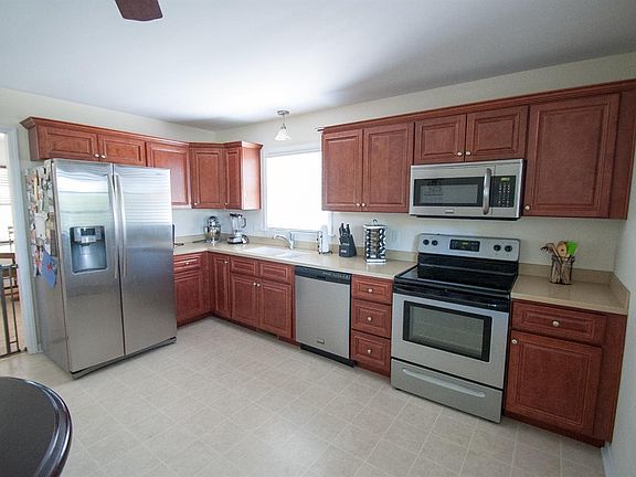 Must see move-in ready home with garage, available with Zero Down! This beautiful home is in a great location close to everything in a family friendly neighborhood. Recent upgrades include renovated kitchen with Corian® counter-tops and stainless steel appliances, new lighting fixtures, ceiling fans throughout home, newer paint, carpets and so much more! The main floor features a lovely master suite, two bedrooms and a full bath perfect for guests or children! As you continue throughout the main floor, you'll also find a living room, family room with fireplace, dining room and the beautifully renovated kitchen. Downstairs you'll find a large renovated finished basement with recessed lighting and fireplace, large laundry room and full renovated bathroom. This house is complete with two car garage, outdoor storage shed, updated landscaping, and 6 foot aluminum fence in backyard as well as TWO large paved driveways. Entertain on the back deck all summer long. This home is MOVE IN READY!