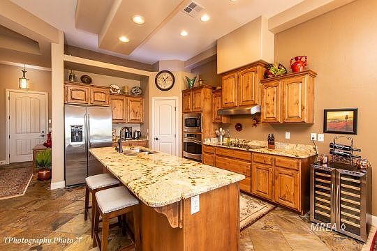 This Cinco Townhome has what you are looking for. Located above the Arnold Palmer 7th hole and facing to some of the best sunsets in the west. This Cinco floor plan has an attached Casita (2nd Master Bedroom) leading to the front courtyard with separate entry. The 11' high ceilings give this home a very open feel. Elegant, Slate Tile flooring. Large kitchen with walk-in pantry. Reverse Osmosis Filtered Water System. Great Room has a state of the art built-in electric fireplace with door leading to the large covered patio with a costly custom fire pit table. The large picture windows in dining room & great room bring the incredible views inside. Light,bright and airy. All rooms have upgraded ceiling fans. Closet Organizer in Master Closet. Insulated, Heated and Cooled Garage with cabinets, sink and water softener. Additional Insulation blown into ceiling to lower energy bills. Many more upgrades. Don't miss out on the beautiful Mesquite sunsets from this property! These views are hard to find and highly sought after. What are you waiting for? Recent upgrade list available.
