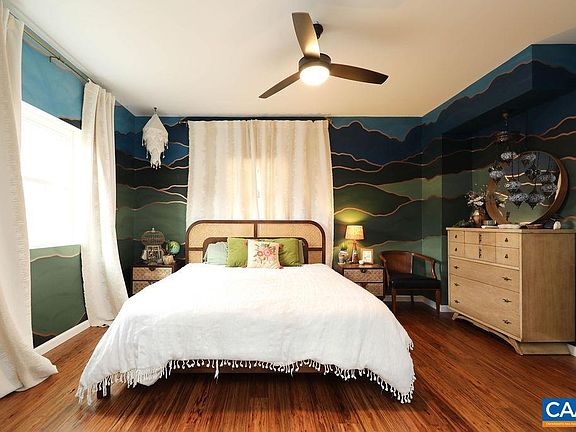 Arts & Crafts Main Home, Detached Apartment (workshop) & Studio Shed in Downtown Charlottesville. The characteristics & inspiration of the original 1945 built home are present in the dramatic details & Main level living at it's finest! The 1st Floor Master Suite boosts a hand painted mural & attached bathroom w massive tiled walk in shower. Eucalyptus & Slate Flooring throughout; Original Exposed Brick Chimney & Rafters. Custom Kitchen w Blue Atlas Countertops harvested in Montpelier. Second Level 2 Bedrooms & Full Bath. Separate Detached Cottage provides master suite, full kitchen ready (was a kitchen owners have turned into a workshop but plumbing all still there) stack laundry hook ups in closet & mountain views off dual covered decks. Private alley access to apartment. Detached shed w vaulted ceiling, recessed lights & mini split. Private Fenced Yard with Stone patio & fire pit area. LIMITED SHOWING OPPORTUNITIES- Come see before it's gone!