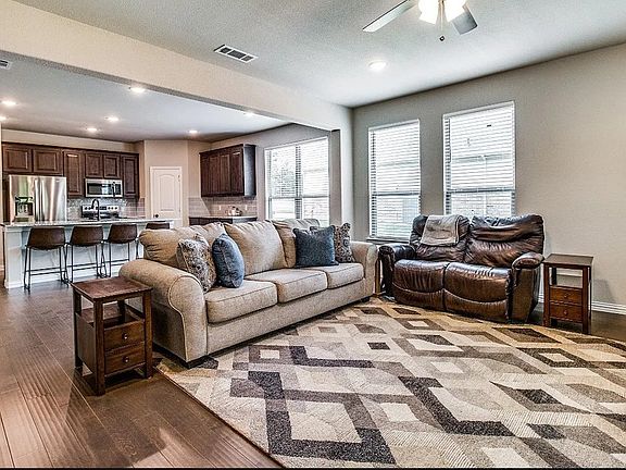 Discover this like-new residence featuring the sought-after Burnett floor plan with charming Craftsman-style curb appeal. The spacious primary suite offers serene views of the wooded backdrop, complemented by a luxurious bath and a generous walk-in closet. Two additional bedrooms share a full bath with dual sinks and a tub-shower combination, while a versatile fourth bedroom at the front of the home can easily serve as a guest room, office, playroom, or formal dining space. The stylish kitchen boasts granite countertops and overlooks a welcoming family room with a cozy fireplace. A convenient mudroom connects the garage entry to the main living area, making daily comings and goings effortless. Step outside to a covered back patio your private retreat with no neighbors behind. Located just minutes from Austin College, this single-level gem combines comfort, flexibility, and tranquil surroundings.