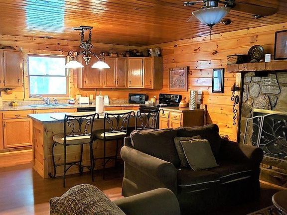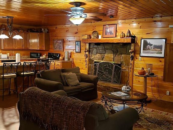 Great investment opportunity or vacation home! 2BR, 2.5BA log cabin conveniently located about 3 mi from downtown Pigeon Forge. Open concept living area complete with kitchen island and beautiful gas fireplace. Each bedroom includes its own spacious bath complete with jetted tub and separate shower. The finished basement provides not only extra living and sleeping space, but also a media room with full-size movie screen and ceiling projector, pool table and air hockey table, 1/2 bath, and washer/dryer. Enjoy the private wooded view from the deck while relaxing in the hot tub. Excellent income potential--cabin currently rents between $150 and $225 nightly, depending on season.