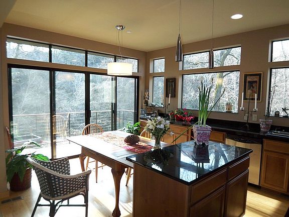 Peaceful creekview... Kitchen w/wonderful upgrades including addition of windows, granite, bamboo floors. Spacious master suite w/private balcony overlooking millcreek, large family/den on the lower level, Living room with 2 story ceilings and wall of windows to let the outdoors in, clear span stairway to the upper level office with another private balcony.