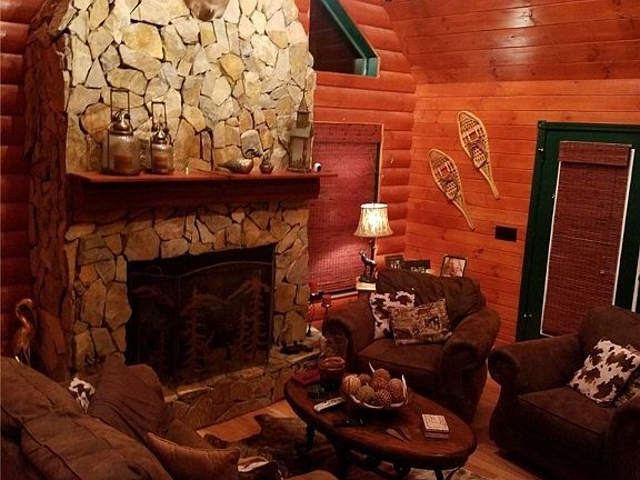 Secluded mountain cabin!! If off the beaten path is what you have been looking for, don't miss out. This immaculate cabin can be your mountain escape from the city. Well built and well kept makes this one is a prime find. Vaulted ceilings in the living room, stone fireplace, surrounded by wood walls leading to a user friendly kitchen with double gas oven range. Two covered decks to welcome the view from both sides of the home is a must see. A loft master suite and bath, downstairs you will find the second bedroom, a third sleeping area and bath. Basement also features a den area with a gas fireplace. Outside sit by the firepit for a relaxing evening, while enjoying the night sky. Best of all it is move in ready with only a few exceptions.