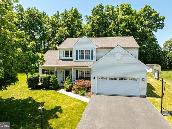 This home has everything you are looking for and more. As you arrive you will be welcomed home with nice landscaping and a cozy front porch. Inside, the foyer boasts wood floors, a staging area, and coat closet. From here you have a choice of which room to enter. The versatile office/den/playroom is at the front of the home with great natural light and French doors for privacy. To the left is the Living Room which shows off the cathedral ceiling, and provides a quiet or entertaining space that flows into the Dining Room. The Dining Room also has lots of natural light and is accented with a chair rail and tray ceiling. Next is a true Eat-In Kitchen with a pantry, double oven, ample cabinets and counter space, an island, and sliders to the rear deck. The adjacent Family Room features a gas fireplace and ceiling fan. The main level is completed with a powder room, the main floor laundry, and entry to the 2-car garage. The garage attic, accessible via pull-down stairs, provides abundant additional storage. The second floor hosts the primary bedroom with an ensuite. This bedroom has a walk-in closet and the attached bathroom has a double sink vanity, a tub, and a separate shower. The second floor is rounded out with 3 additional bedrooms, a linen closet, and a hall bath. A pleasant surprise is the finished basement, offering a generous amount of living space while still providing plenty of room for storage. The basement includes its own gas heaters, ensuring the perfect temperature on cool nights. When it is time to enjoy the great outdoors, you will be able to relax or entertain on the deck and enjoy the benefits of a level yard.