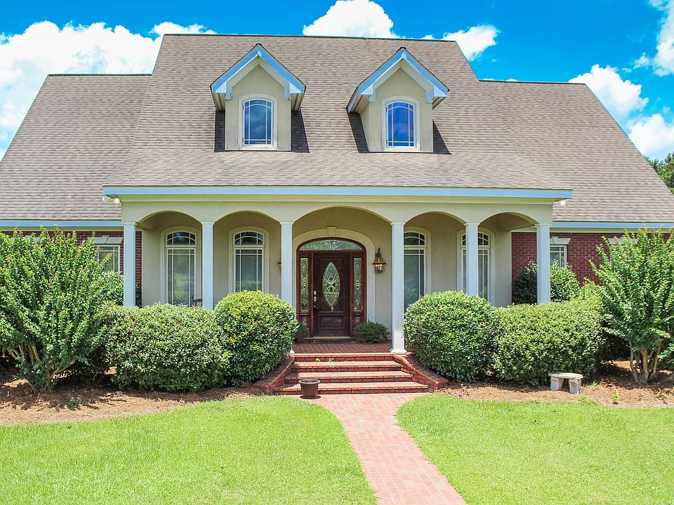 Follow a country road home to this beauty in a wonderful neighborhood and situated on just under 20 acres (mol). There is room galore with over 5100 sq. ft. +/- ... the master and 2 bedrooms down and another master suite upstairs along with an office, game room and playroom or den. Custom details can be seen throughout the great room (stunning fireplace), formal dining and kitchen. Note that there is also a separate stairway off the garage leading to the upstairs. Features include porcelain countertops, custom cabinets, sub zero fridge, a lovely chandelier in dining room, hardwood floors, stunning columns, security system, surround sound and double carport with storage area. The home sets on 3.5 acres with a huge barn and 16.27across the road.