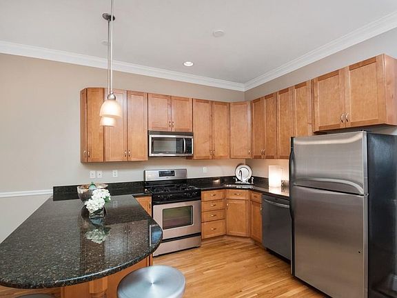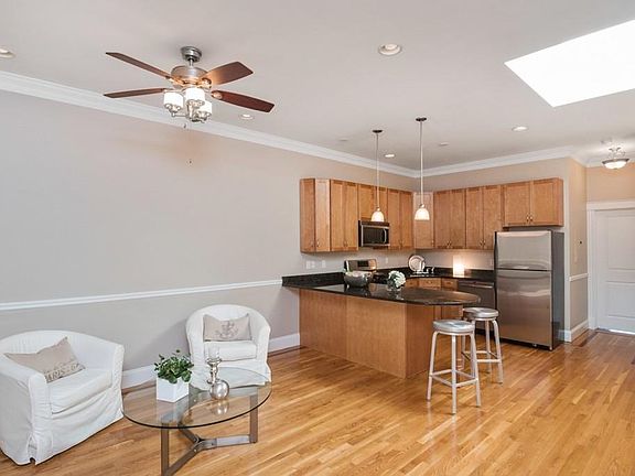 Phenomenal East Broadway PENTHOUSE with huge open floor plan! You can't get more Bostonian than walking through your custom wrought iron gates to the finest restaurants and shops South Boston has to offer, and then just around the corner you're in the Seaport District. This unit boasts SS/Granite kitchen with over-sized breakfast bar with seating for 6, designated dining area & large living room area with gas FP. Expansive master suite has walk in closet, Jacuzzi tub & second closet. This unit has it all: Central AC, soaring ceilings, skylight, in unit W/D, hardwood floors with inlay & beautifully crafted crown molding! Custom wrought iron railed deck with exclusive roof rights.