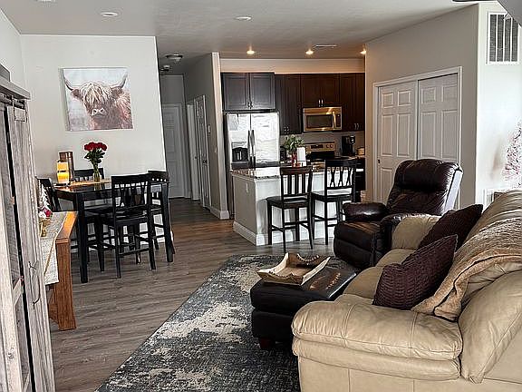 This condo is in an over/under 2 unit building and has a single attached garage off the kitchen! The open concept floor plan has a living room open to the kitchen and dining area. The kitchen has rich stained maple cabinets, a center island, granite counter and stainless appliances. There are 2 bedrooms including the master with master bath and walk in closet. There is another full bath with laundry, washer/dryer included. Single stall heated garage with storage closet.