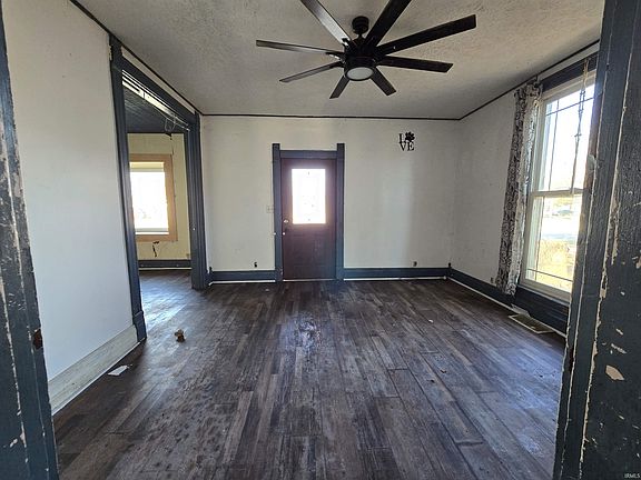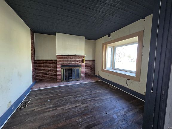 Spacious 3 to 4 bedroom 2 bath home on a double lot in Greentown! Front living room has a bay window for an abundance of light and a fireplace. The galley style Kitchen has newer cabinets and French doors leading to the side patio. There is one bedroom on the main level and two bedrooms upstairs. There is also a small room upstairs that could be used as a bonus room, den, craft room, office, or a small bedroom. The two car detached garage has access off of the alley. Property to be sold as-is where-is.
