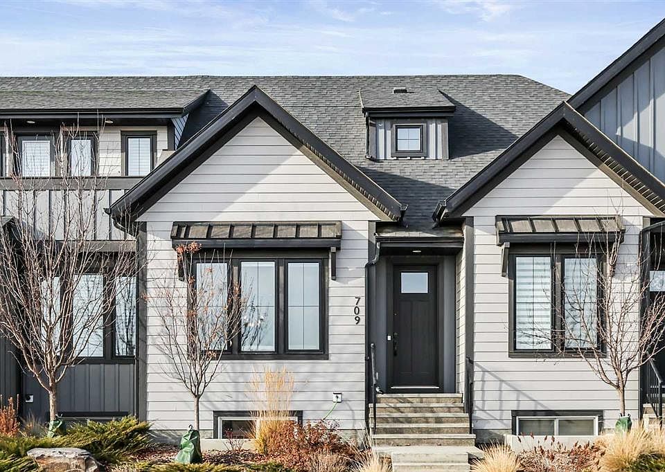 Welcome to 709 Marine Drive SE: a builder-rebuilt villa townhome offering nearly 1,900 sqft of professionally finished living space and premium upgrades throughout. Originally one of the Mahogany model showhomes, this unit was entirely rebuilt in 2021 and has barely been lived in since. The open main floor features engineered hardwood, a chef-inspired kitchen with upgraded stainless steel appliances, quartz counters, and a large island. The spacious primary suite includes a walk-in closet and private ensuite. A bright living room, generous dining space, powder room, and main-level laundry complete the layout. The lower level is professionally finished with two large bedrooms, a full bathroom, and a rec room. Comfort upgrades include air conditioning, dual-zone control furnace, water softener, and WiFi thermostats. Enhanced soundproofing construction (double wall with air gap, insulation, and drywall layers) offers quiet living. Enjoy a private, builder-fenced backyard with lane access and a detached double garage. Bins are collected at the rear. Best of all, you're steps from Mahogany’s lake entrance, beach club, parks, shopping, and restaurants. Move-in ready with optional furnishings available. No condo fees, just lock-and-leave ease in one of Calgary’s most sought-after lake communities.
