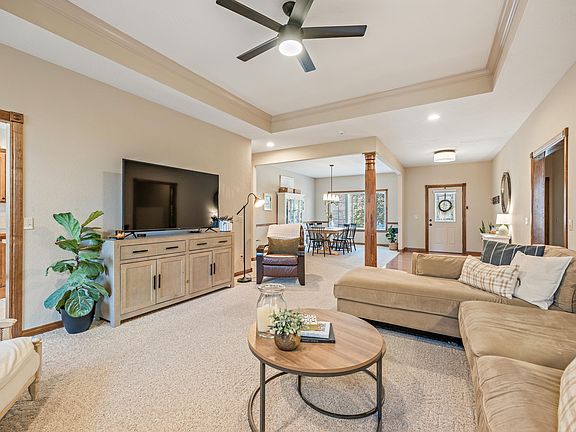 Welcome to 709 Shoreline in the beautiful Waterford subdivision. This home offers over 2,200 sqft of living on one level! Entering the home, you are greeted with 9ft ceilings throughout, stained wood trim and crown molding, plus solid wood doors. The home boasts 3 oversized bedrooms with large closets. The main bedroom is massive and the large ensuite features a jetted tub, walk-in shower, double vanity, and walk-in closet. The kitchen is a great size with loads of cabinet and counter space plus an eat-at bar. For entertaining your guests, there's a large formal dining room that opens to the living room with a cozy gas fireplace. Two more large bedrooms and the 2nd bath finish out the home. Outside you will enjoy a privacy fenced backyard perfect for your pets and kiddos. This neighborhood is great for evening walks around the lake or hanging out at the pool on those hot summer days. In addition to this quality-built home, the location is super convenient with easy access to Hwy 65 or go north on NN to Hwy 60.