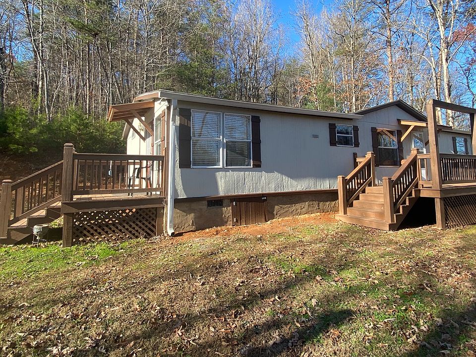 ~Affordable~ One Level Living..This 3bdrm/2 bath Fleetwood is nestled off a paved road with easy access. This home is located on a wooded 1.24 acre lot conveinantly located within minutes of East Fannin Elem & Lake Blue Ridge. Front & side deck(added 2017) with a seasonal mountain view & end of road privacy. City water, permanent foundation Low maintenance siding. New windows & Front door (added 2020) Room to build a small garage or an outbuilding. Ideal Investment Property for a Rental or First Time Home for Full Time Living. This property does qualify for a Loan. Listed below Appraisal value with No issues found from recent home inspection. You won't find a better deal in Fannin County. Sold Partially Furnished. Pre-Approval Letter required with future offers. Thank you.