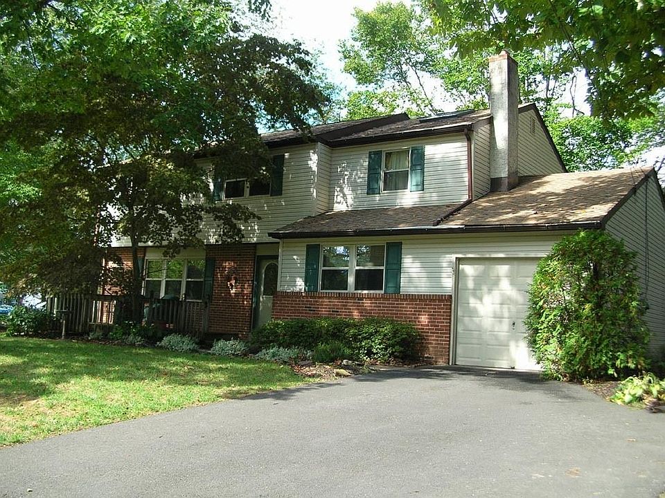 Beautiful 5 BR colonial in the Fairfield neighborhood of Warminster set on a great wooded lot. This home features a spacious formal living room and a dining room with chair rail and a lovely chandelier. The kitchen offers oak cabinetry, tile floor and backsplash, and a jalousie garden window. Step down to the family room with a stone fireplace, crown molding, and berber carpeting. His and hers closets, wood tounge & groove ceiling with skylight and ceiling fan, and a soaking tub make this master bedroom a supurb retreat. The upstairs bathroom also has a wood ceiling with skylight, ceramic tile flooring, and a double shower with a bench. This home also has a garage, double-wide driveway, 2-zone HVAC, and a garden shed. A lot of home for the money!