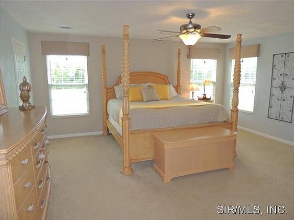 Remarkable 2 story on 1.4 Acre lot! One Owner home in Smithton, IL located at the north end of town in the Manors of Fieldstone. Striking 2 story home with walk out basement, 3 car extra-length garage with utility sink, covered porch, large patio at walk out and a large deck perfect for entertaining. You will enjoy all the natural light, unobstructed view and great breeze/air flow. Updated paint and finishes throughout. Grab your clubs and practice your swing at home! Huge backyard worthy of your soccer and baseball games. Open floor plan featuring gas fireplace & new carpet in Living room, built in shelf for TV electronics, bay at breakfast nook, attractive cabinets and appliances. Generous master bedroom with 2 walk in closets and a luxury bath with jetted tub, separate walk in shower and adult height double vanity. Low E windows, zoned HVAC, and CFL lighting thru out most of the home. Walk out basement has great potential for future finishing and tons of natural light along with rough in for bath. Roof 2016. Water heater 2019. Freeburg school district.
