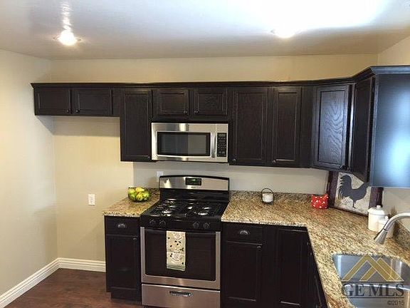 Totally remodeled from the brand new HVAC central heating and cooling, to the espresso cabinets to the slab granite counter tops, stainless steel appliances, flooring, carpet, custom paint, garage door with opener and remote and more. Fenced yard. Indoor laundry room. 3 bed 2 bath with large master with walk in closet. Front of house has fence set back for lots of off street parking, for RV or large truck etc. This house is gorgeous and priced to sell!